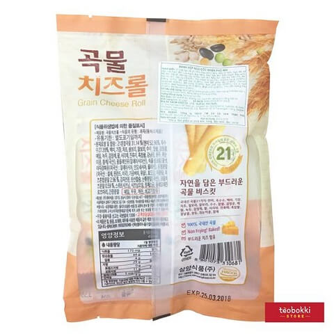 Đây là một loại bánh rất được người Hàn yêu thích, thuộc top snack bán chạy của tập đoàn Samyang. Sản phẩm được làm từ 21 loại ngũ cốc như gạo lức, bắp, lúa mạch, kiều mạch, mè đen, cao lương,...kết hợp thêm nhân kem phô mai bên trong, giúp không chỉ bổ sung dinh dưỡng và năng lượng cho người dùng mà còn mang đến loại bánh xốp giòn, béo đầy hấp dẫn.