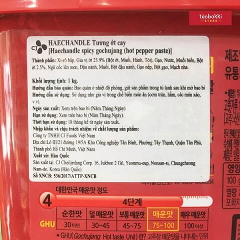 Đây là loại tương ớt lên men truyền thống Hàn Quốc với độ cay cấp độ 4/5 theo chuẩn cay đối với các loại gochujang (GHU).