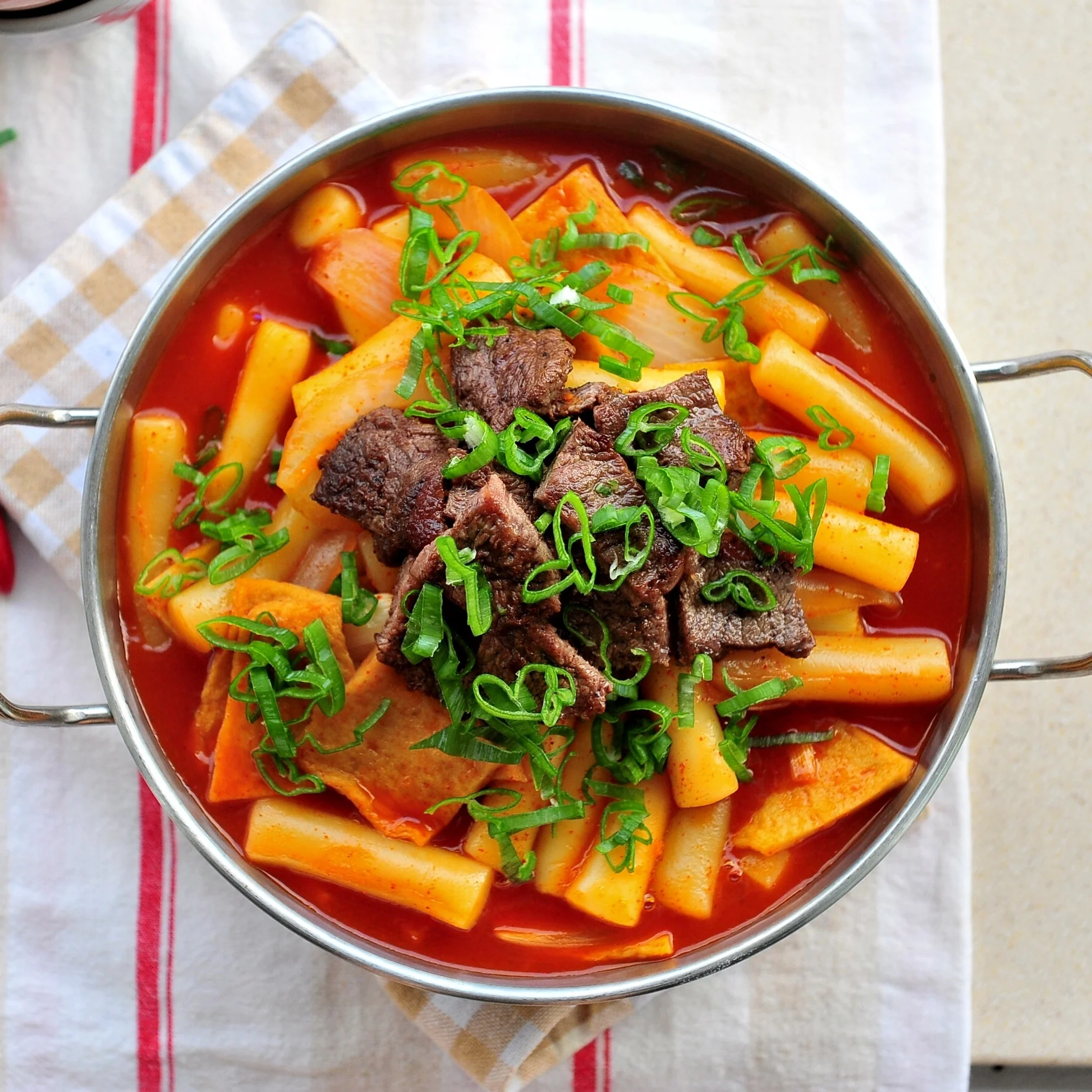 Sản phẩm bao gồm 300g bánh gạo và một gói sốt 120g được pha sẵn tiện lợi. Tteok được làm chủ yếu từ gạo và muối, có độ mềm dẻo dai khi nấu. Sốt là sự pha trộn hài hòa từ nước tinh khiết, tương ớt, mạch nha, bột ớt đỏ, nước dùng bò,...tạo nên vị cay mặn ngọt đậm đà.